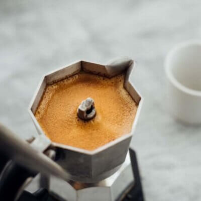 Die Mokkakanne, auch bekannt als La Mokka ist eine traditionelle italienische Kaffeemaschine, die auf dem Herd erhitzt wird. Das Wasser wird im unteren Teil der Kanne erhitzt und durch den Kaffee gedrückt, um einen starken Kaffee zu erzeugen.