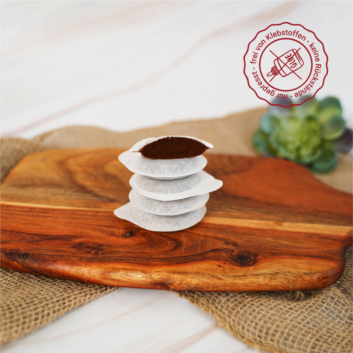 - 7.5 g Inhalt/Pad – einzeln verpackt in dünner, gleichzeitig sehr dichter Folie