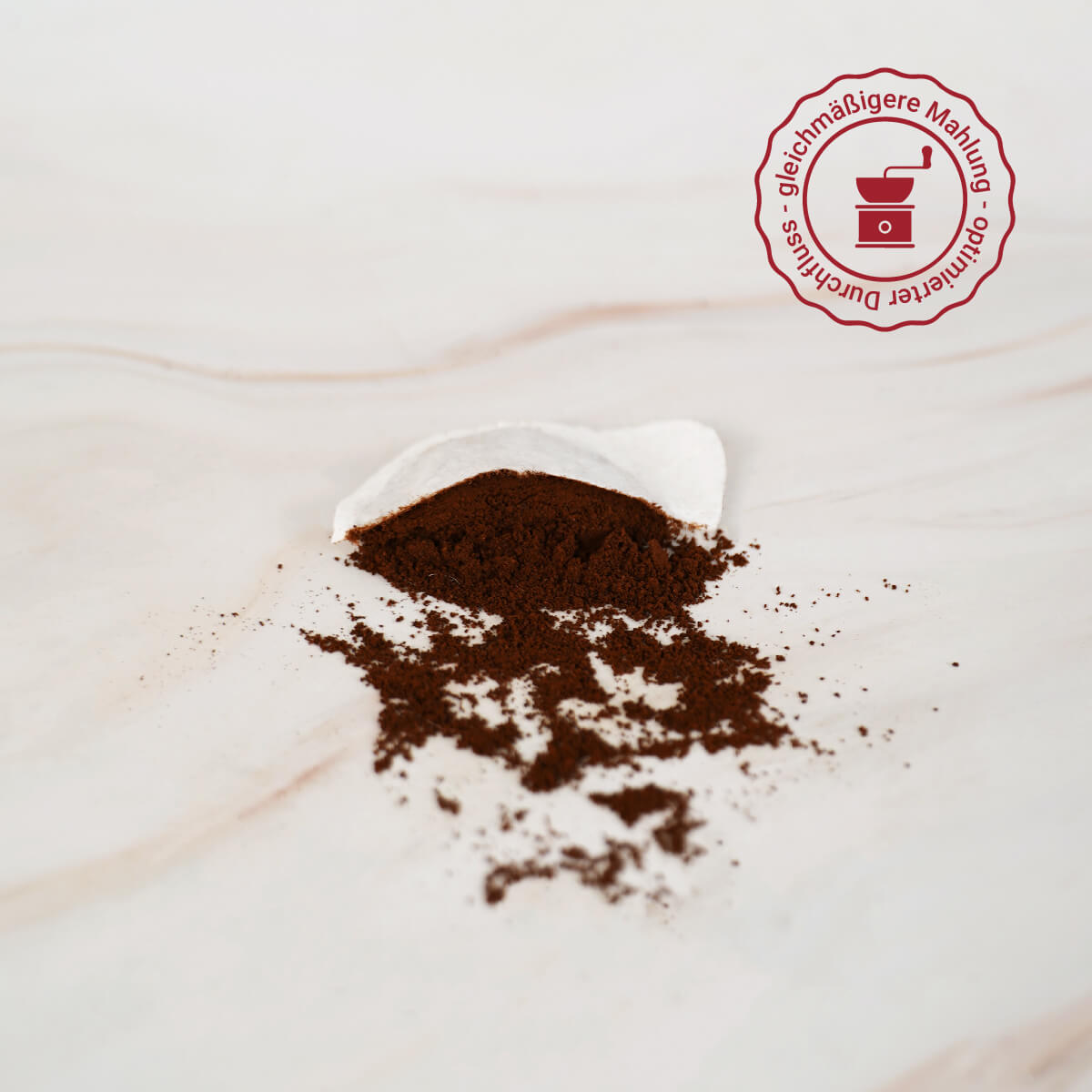 Dank der gleichmäßigen Mahlung des Kaffees in modernsten Mühlen wird ein optimierter Durchfluss und eine ideale Extraktion erreicht, was zu einem intensiven Geschmackserlebnis führt.